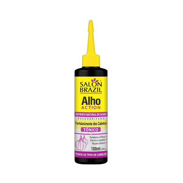 O Tônico Capilar Alho Action Salon Brazil vem com a sua ação potencializada pelas presenças do Extrato Alho desodorizado, e de um Blend BioBotânico de oito ervas medicinais e proteína. Revitaliza os cabelos desde o bulbo capilar, até a sua raiz, mantendo a flora capilar do couro cabeludo saudável, dando resistência aos fios, prevenindo a queda e favorecendo o seu crescimento. Os fios ganharão resistência, elasticidade, maciez e brilho.
